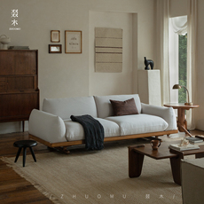 帕沙曼可拆洗实木沙发布艺客厅小户型中古风云朵沙发雪尼尔宽坐深