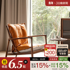 物应莫里斯实木沙发复古单人位布艺黑胡桃木小户型北欧客厅沙发椅