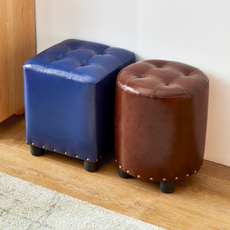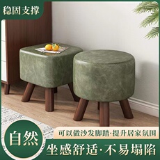 实木圆凳皮矮凳换鞋凳客厅简易沙发凳网红懒人小凳子ins北欧简约