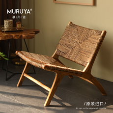 飞艇沙发椅法式复古实木休闲椅单人位客厅懒人沙发家用条纹原木风