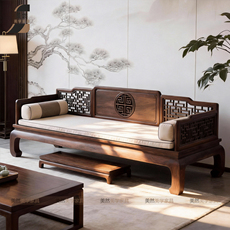 新中式北美黑胡桃木客厅阳台小户型罗汉床沙发实木宋式美学罗汉床