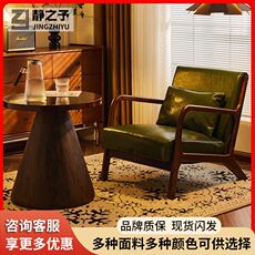 轻奢美式实木单人沙发椅复古布艺阳台休闲懒人躺椅客厅家用老虎椅