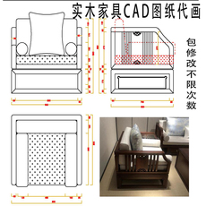 cad代画实木活动家具木门 欧式原木沙发椅子图纸结构三视图组装图