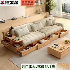 卡座实木沙发软包坐垫一体小户型家用大容量抽屉储物可定制飘窗柜