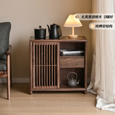 新中式实木茶桌侧边茶水柜客厅靠墙烧水壶一体黑胡桃木沙发边柜