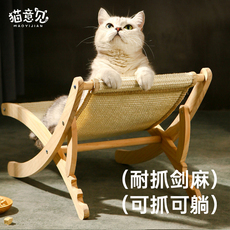 猫窝猫抓板剑麻一体猫躺椅实木猫爬架耐抓折叠四季通用猫床猫沙发