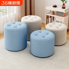 布艺小凳子家用矮凳圆凳客厅沙发茶几凳创意网红实木板凳棉麻进门