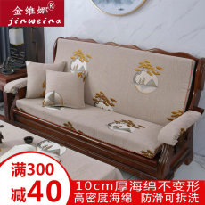 实木沙发坐垫带靠背联邦椅子三人老式木质连体沙发垫加高密可拆洗