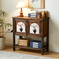 复古简约藤编储物柜家用小户型门厅餐边实木民宿轻奢玄关收纳柜子