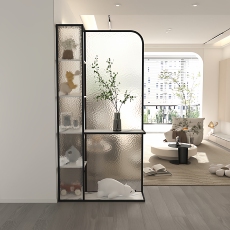 进门客厅玄关柜屏风简约现代沙发入户对门长虹水纹玻璃隔断置物架