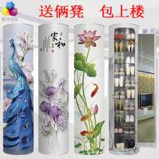 现代创意简约360度旋转鞋柜 门厅柜阳台玄关鞋架加大圆形圆柱特价
