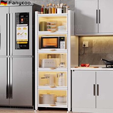 厨房多功能置物架落地多层收纳家用微波炉橱柜锅碗餐储物防尘柜子