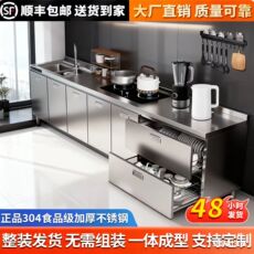 304整体不锈钢定制厨房橱柜家用小户型简易灶台一体储物收纳碗柜