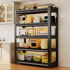 厨房家用置物架多层多功能靠墙一体微波炉收纳架橱柜货架碳钢架子