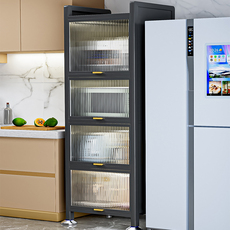 厨房整体橱柜窄夹缝多功能置物架落地多层收纳柜微波炉烤箱碗盘柜