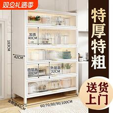 拉门厨房置物架微波炉收纳柜多层防尘锅具整体橱柜多功能落地收纳