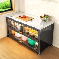 厨房置物架一体靠墙岩板多功能切菜操作台落地收纳柜橱柜工作台面