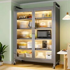 厨房玻璃收纳柜防尘钢制储物柜带门橱柜多层家用微波炉置物架碗架