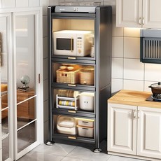 速发厨房置物架家用储物架多功能防尘橱柜多层带门收柜纳微波炉锅