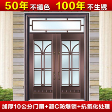 别墅大门双开门锌合金入户玻璃防盗门农村庭院门仿真铜不锈钢门