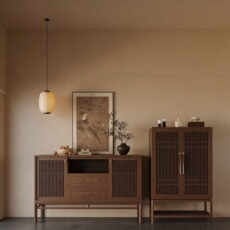 中古风免漆板骨骼线柜门肤感木纹色宋氏美学拼色骨骼线柜门定制