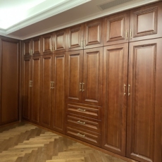 上海实木整体橱柜门板定做美国红橡衣柜电视一体全屋定制原木工厂