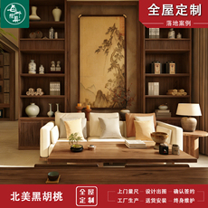 每城新中式乌金木全屋定制实木家具上门量尺设计安装客厅背景墙柜