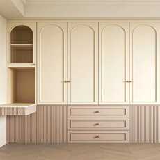 上海全屋定制实木衣柜餐边柜鞋柜实木颗粒欧松实木多层中风奶油风