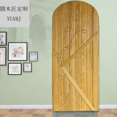 圆木匠拱形实木门 纯原木室内房间门全木门弧形门平开复古卧室门