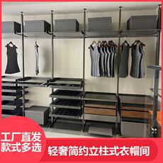 极简轻奢定制铝合金立柱玻璃层板衣帽间架走入式现代简约整体衣柜