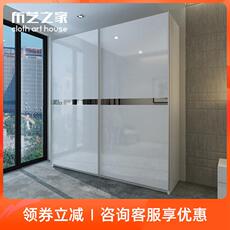 现代简约推拉门衣柜实木质柜定制门衣橱滑移顶漆整体卧室家具大烤
