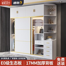 马六甲实木生态板衣柜松木衣柜 推拉门移门卧室整体组合简约现代