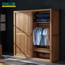 北欧简约纯全实木衣柜推拉门白橡木质整体移门大衣橱定制收纳柜