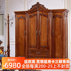 美式全实木衣柜卧室大衣柜三门四门衣橱复古储物挂衣柜子整体定制