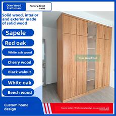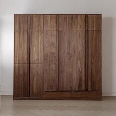 北美黑胡桃木实木衣橱对开整体衣帽间原木樱桃木多功能大容量衣柜