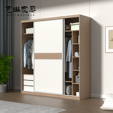 推拉门衣柜卧室组装出租房用整体衣橱经济型家用欧式实木储物柜子