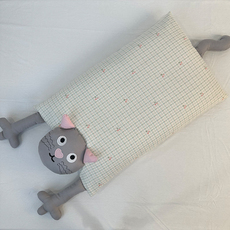 可爱猫咪全棉双层纱荞麦枕头沙发靠枕可拆洗可调节高度儿童枕芯低