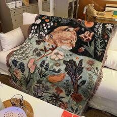 油画卡通猫咪午睡线毯单人沙发毯座椅盖毯儿童房装饰墙布棉线挂毯