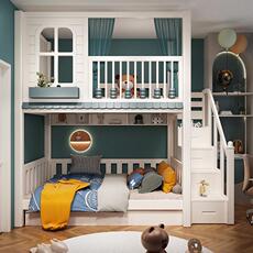 儿童床上下铺双层两层高低下同屋床子母床上树宽城堡公主高护栏床