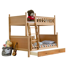 榉木上下床儿童双层床子母床1.35米全实木高低床上下铺木床可拆分