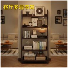实木书架落地置物架一体靠墙家用整理收纳架子书房阶梯式儿童书柜