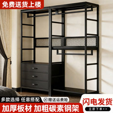 开放式衣柜家用卧室落地挂衣架衣帽间架子金属货架简易组合衣帽架