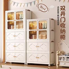 奶油风折叠式儿童宝宝衣柜简易家用多层塑料收纳柜卧室婴儿小衣橱