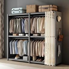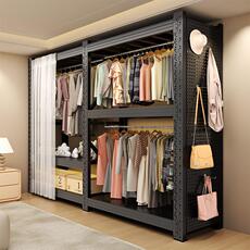 家用货架衣柜简易组装开 放式衣橱卧室出租房收纳层架置物金属挂
