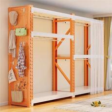 洞洞板卧室挂衣架货架衣柜出租房简易组装金属钢制防尘衣橱收纳柜