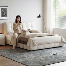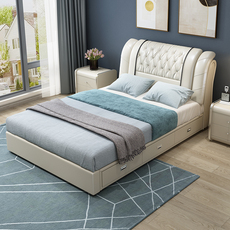 意式真皮床现代简约主卧轻奢双人床卧室软体床2米1.8米储物软包床