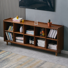 安居客实木书柜储物柜一体卧室落地置物书架胡桃木色简易格子书柜