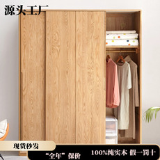 工厂直销纯实木衣柜北欧卧室橡木移门收纳柜子家用推拉门储物柜