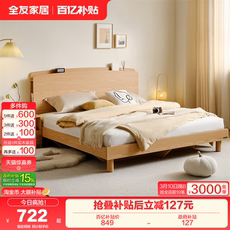 全友家居原木风板式床1米8双人床简约小户型卧室家具储物落地床