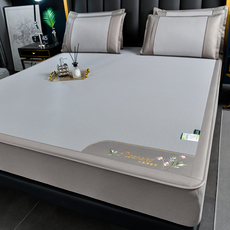 2025夏季冰丝席三件套斜纹提花双人1.51.8米床软凉席子可折叠机洗